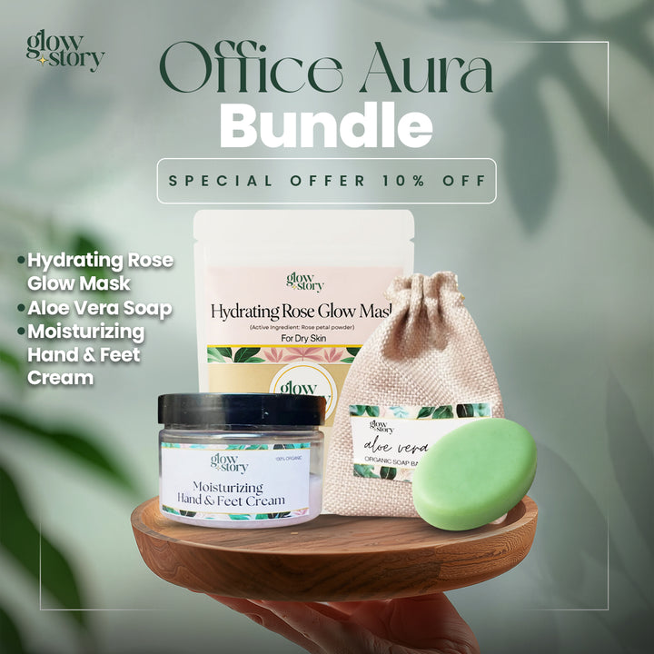 Product Description: Reboot your skin and senses with the Office Aura Bundle by Glow Story, a daily care ritual designed to keep your skin fresh, balanced, and hydrated, even through the longest workdays. This carefully curated trio includes: