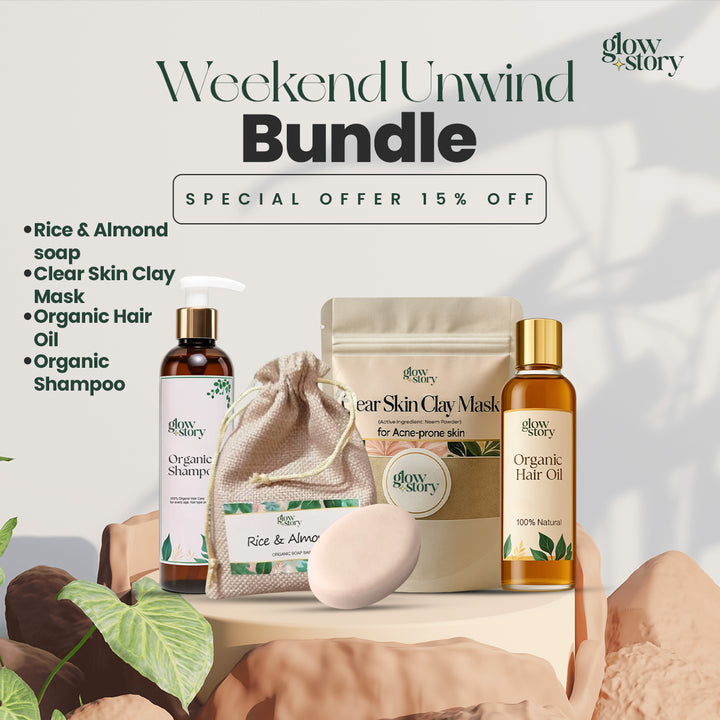 Product Description: Unplug, relax, and renew with the Weekend Unwind Bundle by Glow Story. A luxurious blend of nature-powered skincare and haircare designed for your weekend self-care ritual. Thoughtfully curated for deep nourishment from head to toe, this calming combo includes: