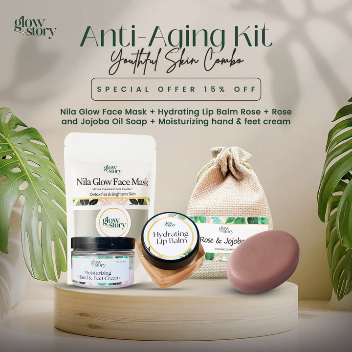 Product Description: Reclaim your skin’s youthful glow with the Youthful Skin Combo an all-in-one anti-aging ritual from Glow Story designed to nourish, protect, and rejuvenate naturally. This deeply restorative kit includes: