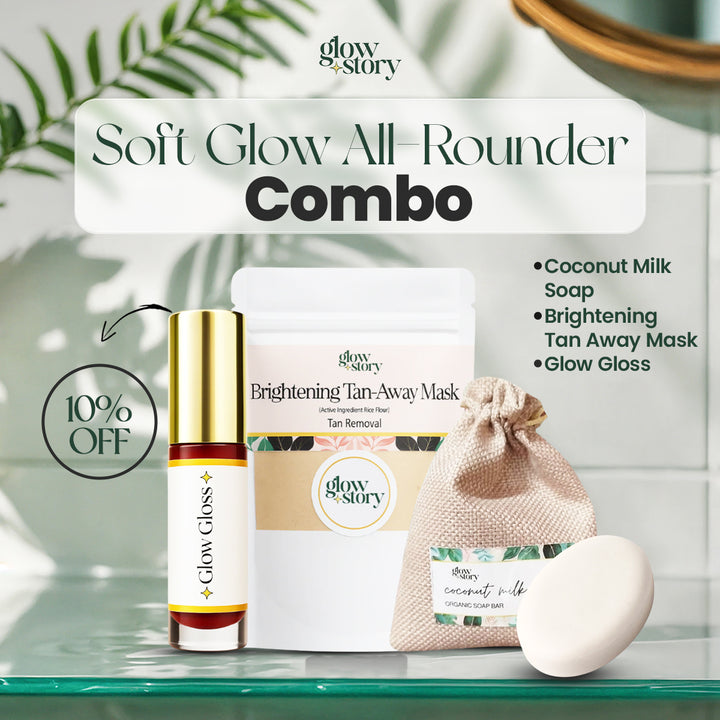 Product Description: Indulge your skin with the Soft Glow All-Rounder Combo by Glow Story, your daily dose of gentle care and radiant confidence. Specially curated for all skin types, this bundle combines deep nourishment with natural glow-boosting power: